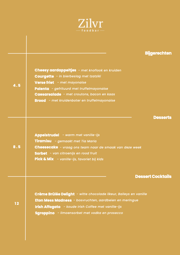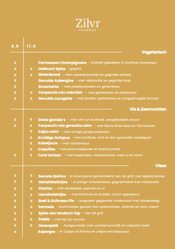 Zilvr heeft verschillende wereldgerechten. Veel vis en vegetarische gerechten.